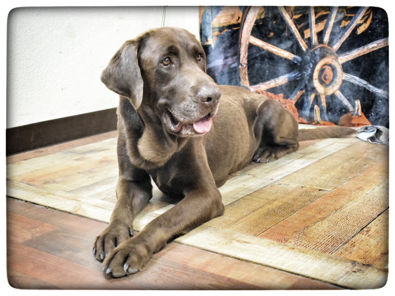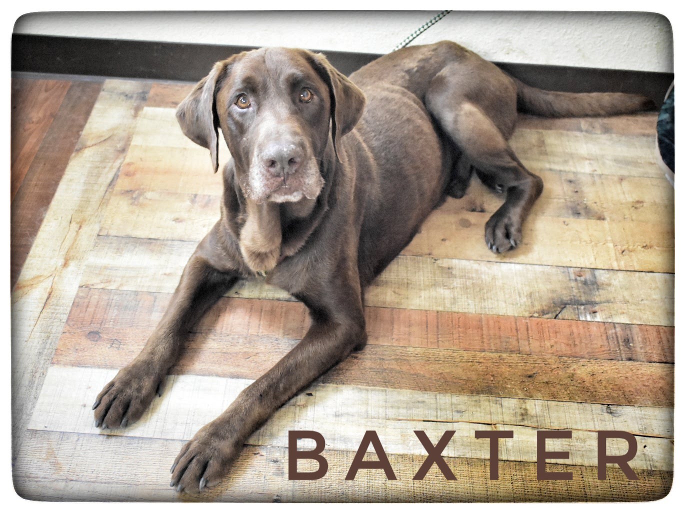 The two chocolate labs have quite a few things in common: They both seem calm, easygoing and well-mannered. And let’s add silly to the list. You can see from Leonard’s photos why this applies to him. As for Baxter, his silly side came out between the snapshots: Clever as he is, he knows the command sit, but if he didn’t get his promised treat fast enough, he would just slide down to the floor and lie down instead. Understandable. After all, who has time to wait around for a treat?!