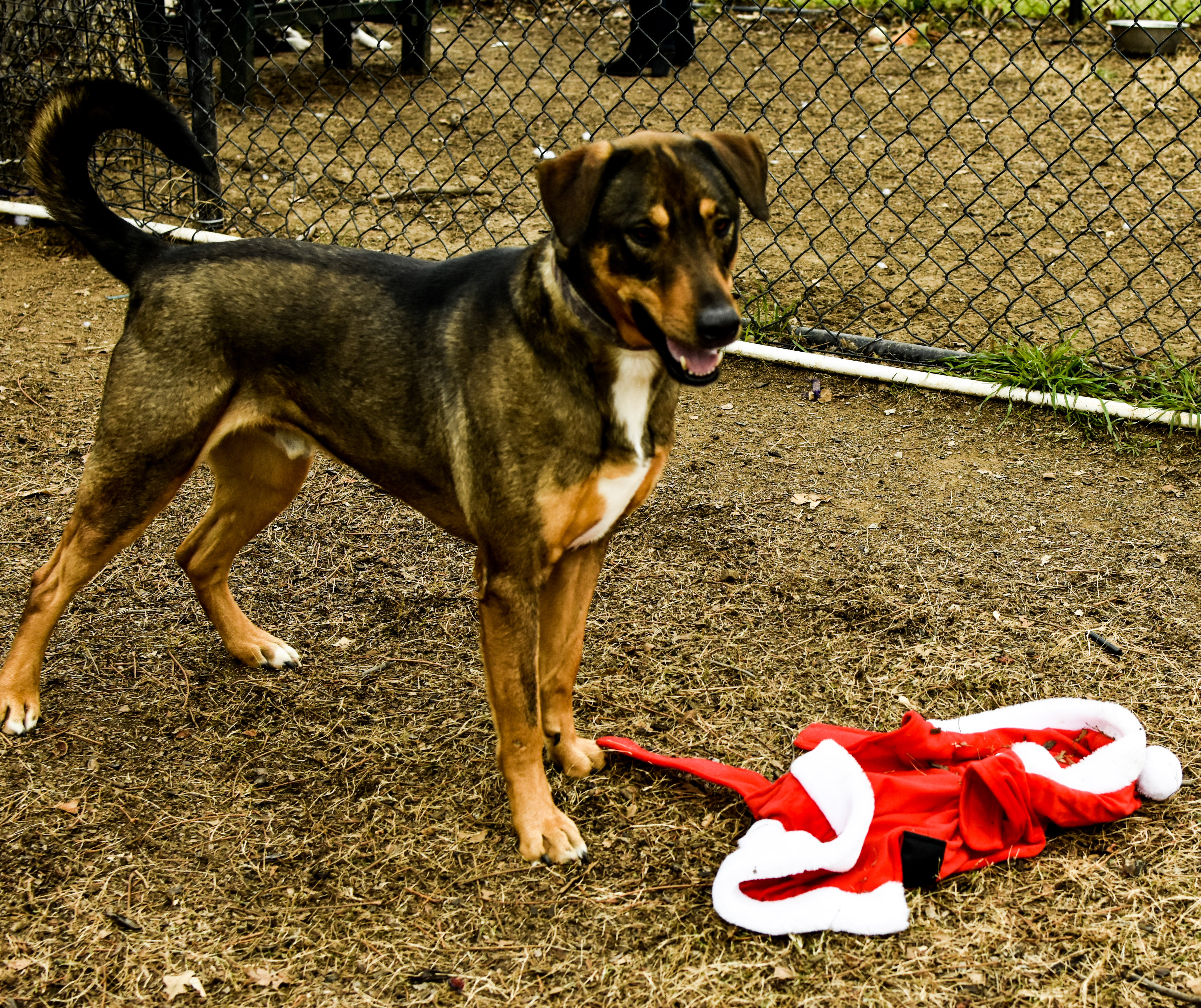 And I can’t fault him for it—who wants to wear a Santa costume after Christmas?! But the costume was on sale, so I had to buy it, hoping that dressing Bullet up would get him the attention he needs to get adopted.