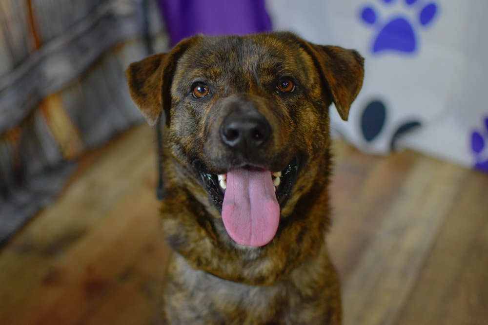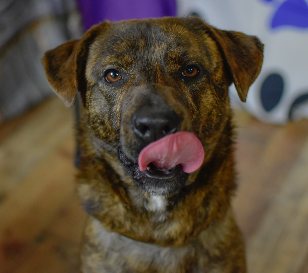 But charming Charlotte isn’t the only lovely lady at the shelter. There’s also, well, Lady. This sassy sweetheart opted not to wear any bandanas for our photo session. Understandable. Her brindle coat deserves all of the spotlight.