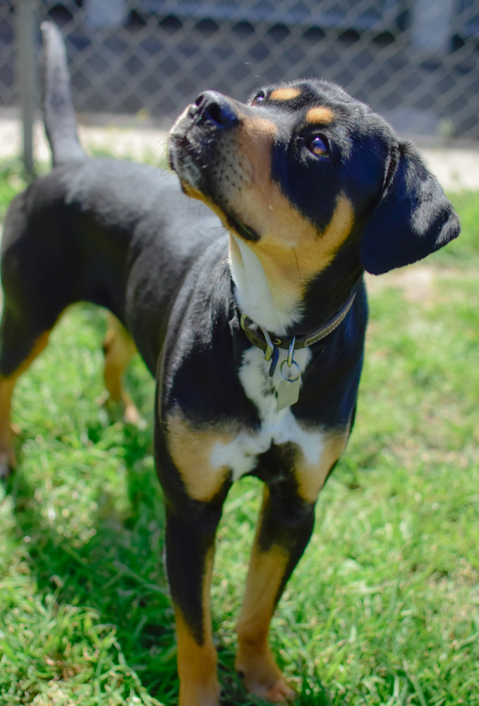 Let’s get the obvious out of the way: Buster is a looker. And he knows it. His whole appearance oozes confidence. When he walks from one side of the play yard to the other, he does it with purpose. He knows what he wants, and he goes for it—be it a yummy treat or a squeaky ball. And did I mention those floppy ears…