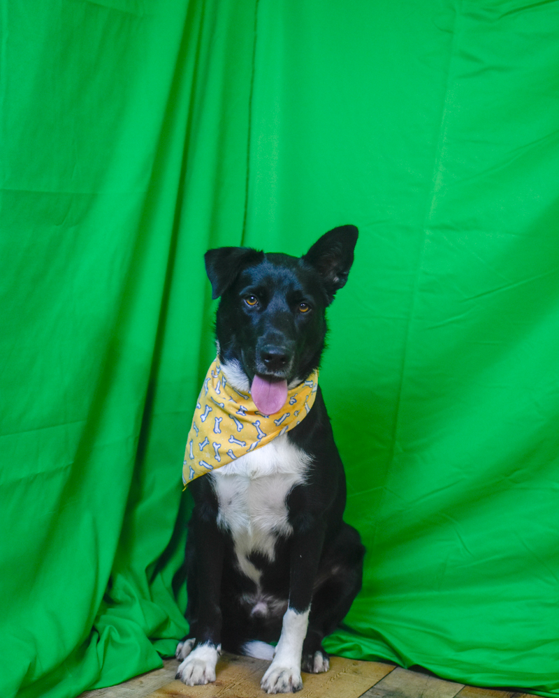Here’s what happened: For months I had been talking about wanting to get a green screen for the photo barn, so I could easily switch out backgrounds and send the dogs “on vacation” and tell a few funny stories that would get them attention on social media and lead to that coveted adoption all the canines are waiting for.