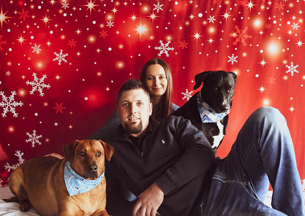 PS: I talked my husband into taking Christmas pictures with me and our dogs, Tucker and Gunner: