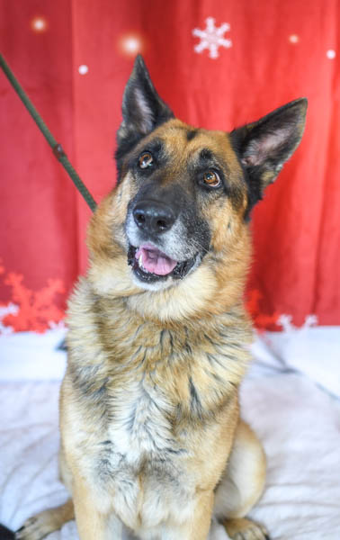 Handsome Darby already had a photo session a few weeks ago, but he still hasn’t been adopted – can you believe it?! So, he decided to give it another try and show off his charming smile and stunning sitting pose once again… this time accessorizing with the popular red scarf.