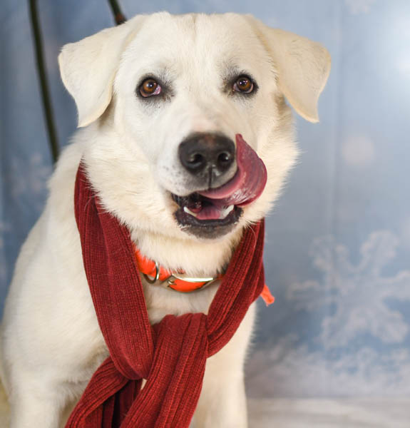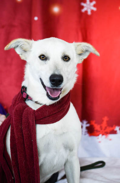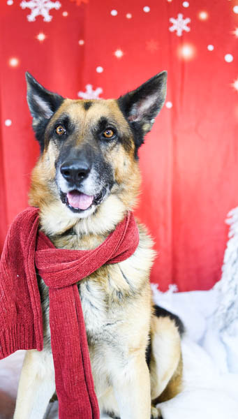 With temperatures dropping this past weekend, the shelter dogs decided to show off their coziest looks yet for another winter-themed photo session – even Darby rocked a scarf this time. Two new snowflake-embellished backdrops gave the photo barn a seasonal flair, while the canines revealed their unique personalities. Curious what that looked like? Check out the photos below!
