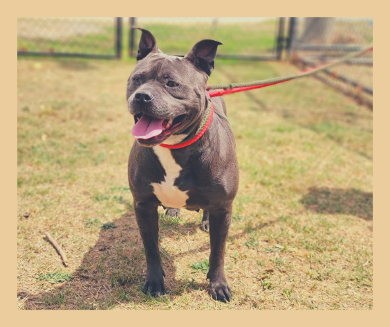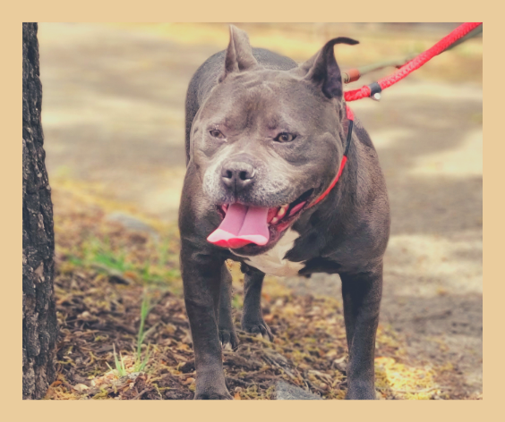 Sporting a hippo-like appearance and a mood-boosting smile, Aspen paraded around the play yard and the shelter grounds with a kind of authority-exuding confidence that could lead humans and canines alike to believe she runs the place. Fitting with the theme, I was told Aspen’s repertoire of signature looks includes a slightly judgmental side-eye that completes her adorably sassy attitude.