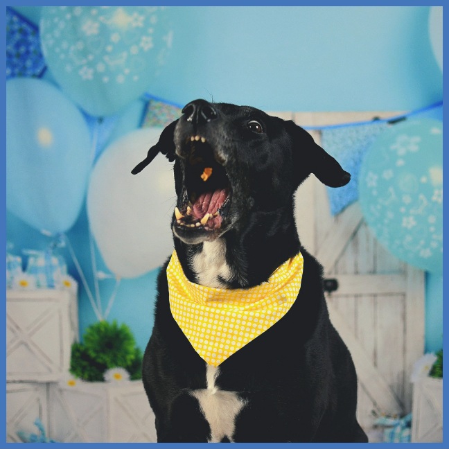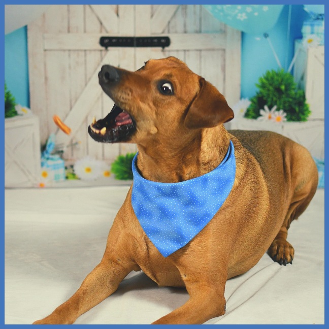 Later, I set up our new backdrop, dressed up the dogs in colorful bandanas, and snapped a few (hundred) photos to make the occasion truly unforgettable. As you’ll see in the pictures, Tucker decided to take a mid-photo-session nap, and both canines showed off their treat-catching skills.